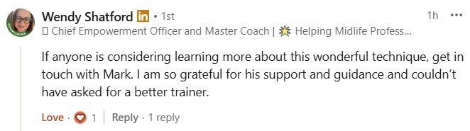 If this sounds interesting, get in contact and have a chat, you'll need to because he doesn't invite everyone onto his courses. Mark is passionate about training Practitioners to play their part in changing the world and if you want to become a Certified Practitioner you will received close support, detailed feedback and regular free opportunities to meet up and discuss with other Practitioners.